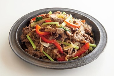 2.牛肉に焼肉のたれを揉み込む。フライパンに入れ、中火で牛肉に八分くらい火が通るまで炒める。