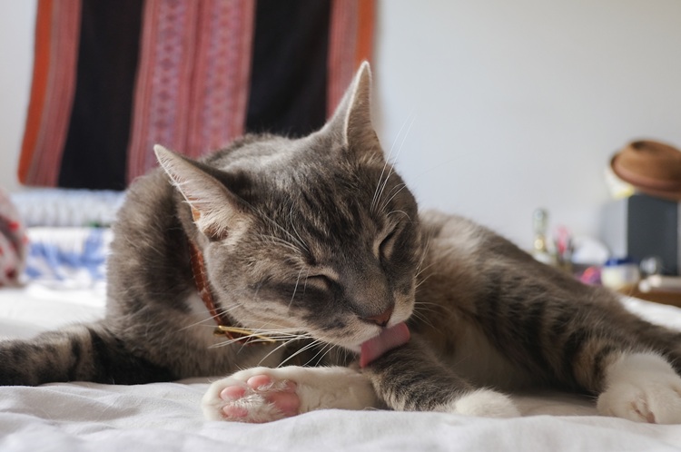猫は、ストレスが原因で過剰に毛づくろいをすることがあります。