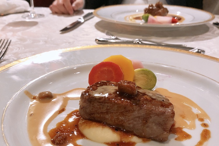 友人と二人で、ホテル内のレストランへはいり、ランチにコース料理を注文して、メイン料理を待っていました。