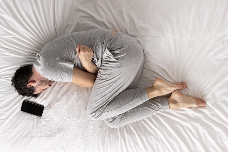 心理的には、心を閉ざしがちな時やストレスを感じている時に、体を丸めるような防御的な姿勢になりやすいといわれています。
