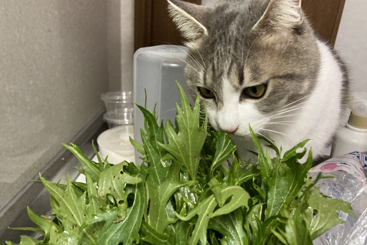 水菜は、猫草よりも歯ごたえがあり、ビタミンも摂取できるので猫草よりも好きになる猫もいるかもしれませんね。