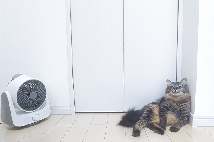 夏に限ったことではありませんが、快適な室温が維持されているか、体温調節のために温度差のある環境を猫が自由に移動できるかが大切です。