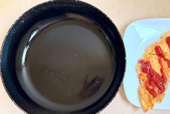 これだけで、フライパンに卵が全くくっつかなくなるんです。