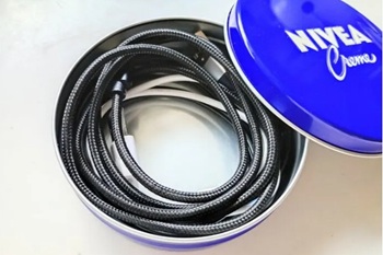g ニベア青缶の丸い形は、長いものをクルクル巻いて収納するのにぴったりです。