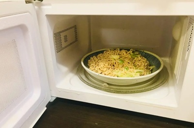 適度に戻った麺を電子レンジでさらに加熱することで、麺にコシが出やすくなる他、ラップをかけずに加熱することで、麺の表面の余分な水分を一気に飛ばすことができます。