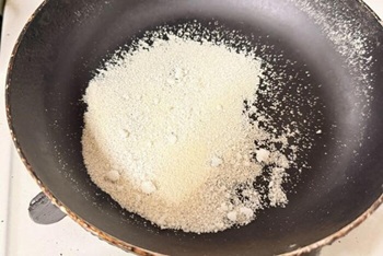 塩を炒めることで、フライパンの表面の細かな凹凸が埋まり、くっつきにくくなるそうです。